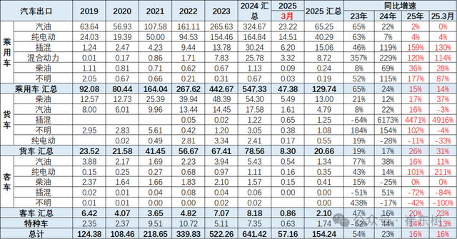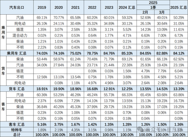 2025年1-3月乘用车的纯电动的占比大幅下降,汽油乘用车和汽油客车出口较强。但3月的纯电动乘用车出口应该环比大幅回升。